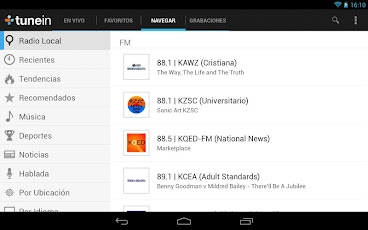 TuneIn te permite escuchar la radio del mundo con música, deportes, noticias, programación hablada y comedia transmitiéndose de cada continente. Disfruta 70,000 estaciones de radio en vivo y 2 millones de podcasts, conciertos o programas en tu móvil o tablet con Android, todo gratis.